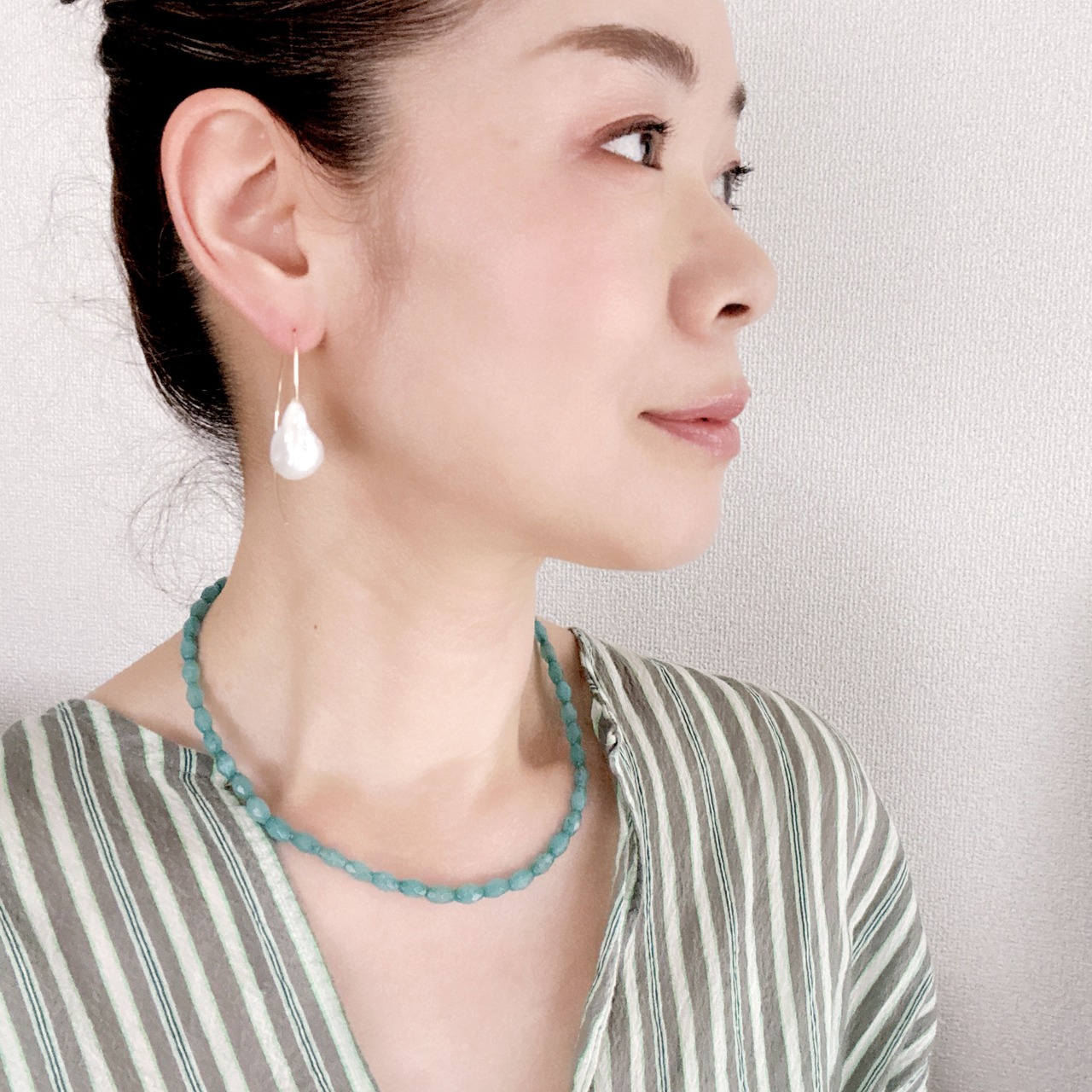 オーシャンブルーの爽やかな色合いが魅力のシャーベットアゲートを使用したシンプルな1連ネックレス。