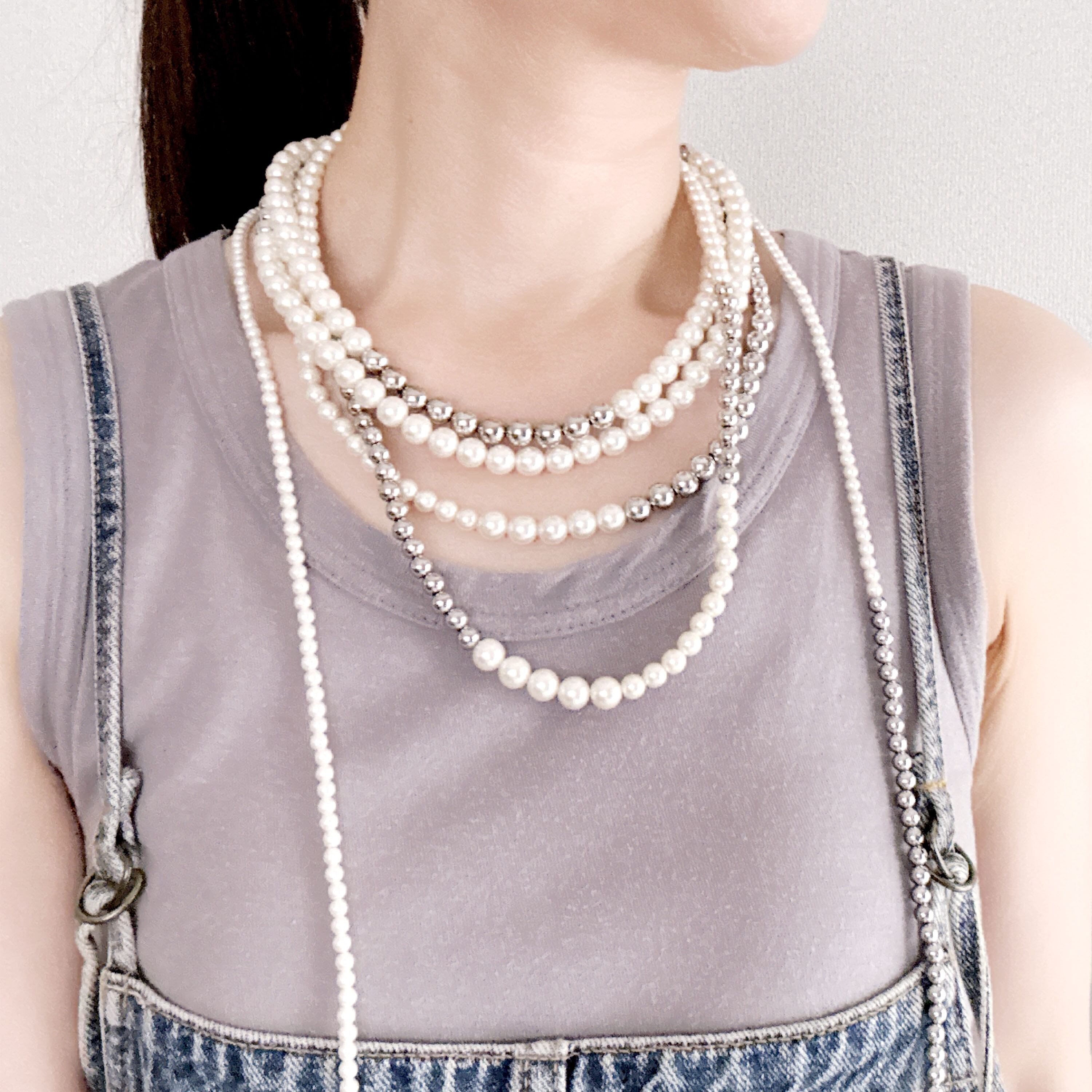 4mmのパールと5mmのシルバーボールのコンビネーションネックレス。