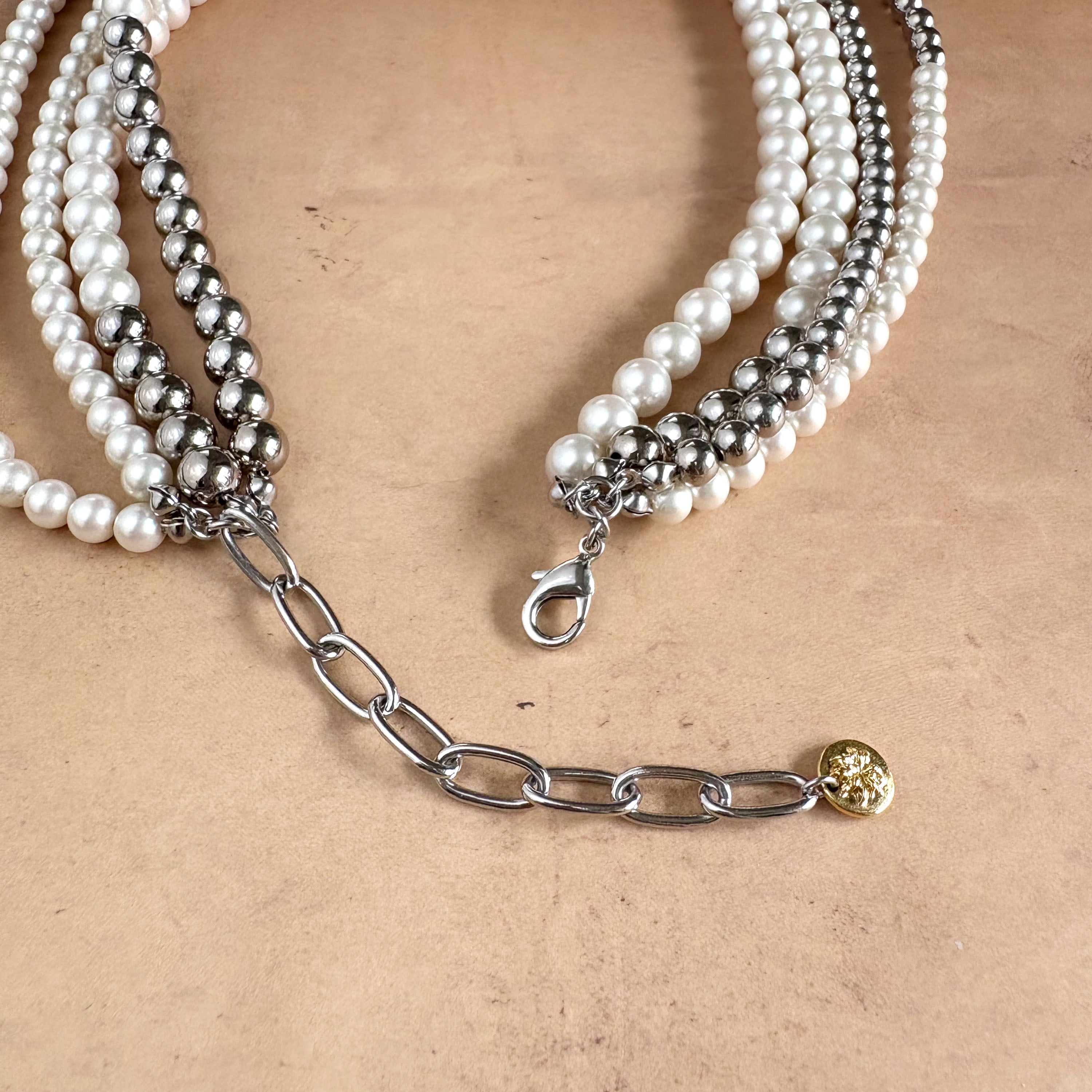 6mmと8mmのパールとシルバーボールのコンビネーションネックレス。